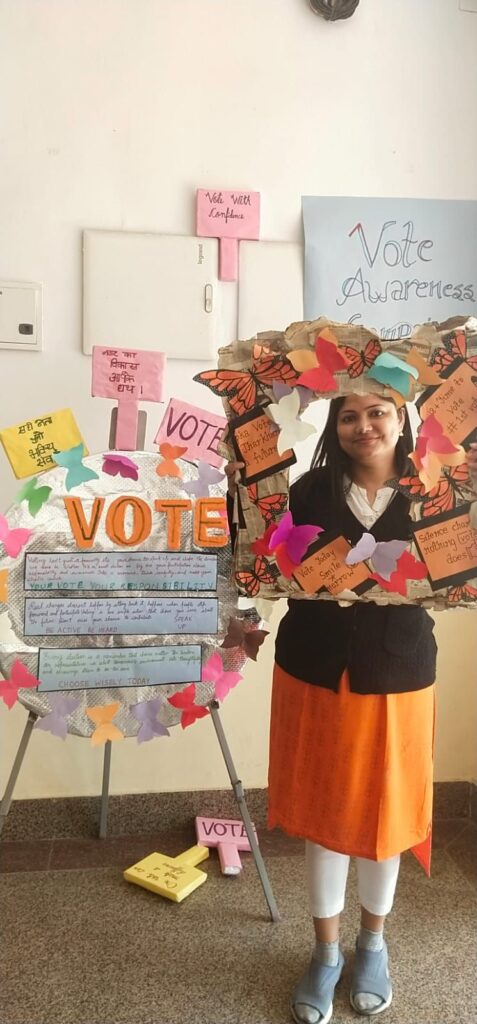NSS के द्वारा आयोजित दो दिवसीय मतदाता जागरूकता अभियान के अंतिम दिन भारी संख्या में युवाओं के बीच अभियान चलाते हुए सदस्यों ने नए वोटरों को स्लोगन के माध्यम से मतदान करने की बाते रखी आज के इस अभियान के समापन में संस्थान के प्रभारी डॉ विजय कुमार झा ने युवाओं विशेष रूप से छात्र छात्राओं को इस चुनाव में बढ़ चढ़ कर हिस्सा लेने का आह्वान किया।