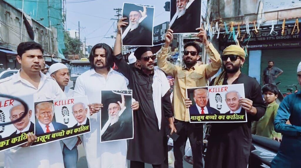 दोपहर करीब 1:40 बजे एकरा मस्जिद के समक्ष एकत्रित हुए प्रदर्शनकारियों ने इज़राइली प्रधानमंत्री बेंजामिन नेतन्याहू और अमेरिकी राष्ट्रपति डोनाल्ड ट्रंप के पोस्टरों को आग के हवाले कर दिया। इस दौरान “इंसानियत का दुश्मन अमेरिका-इज़राइल मुर्दाबाद” और “भारत का दुश्मन अमेरिका” जैसे नारों से पूरा इलाका गूंज उठा।